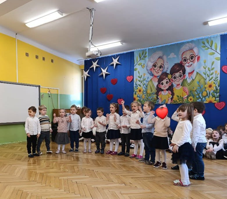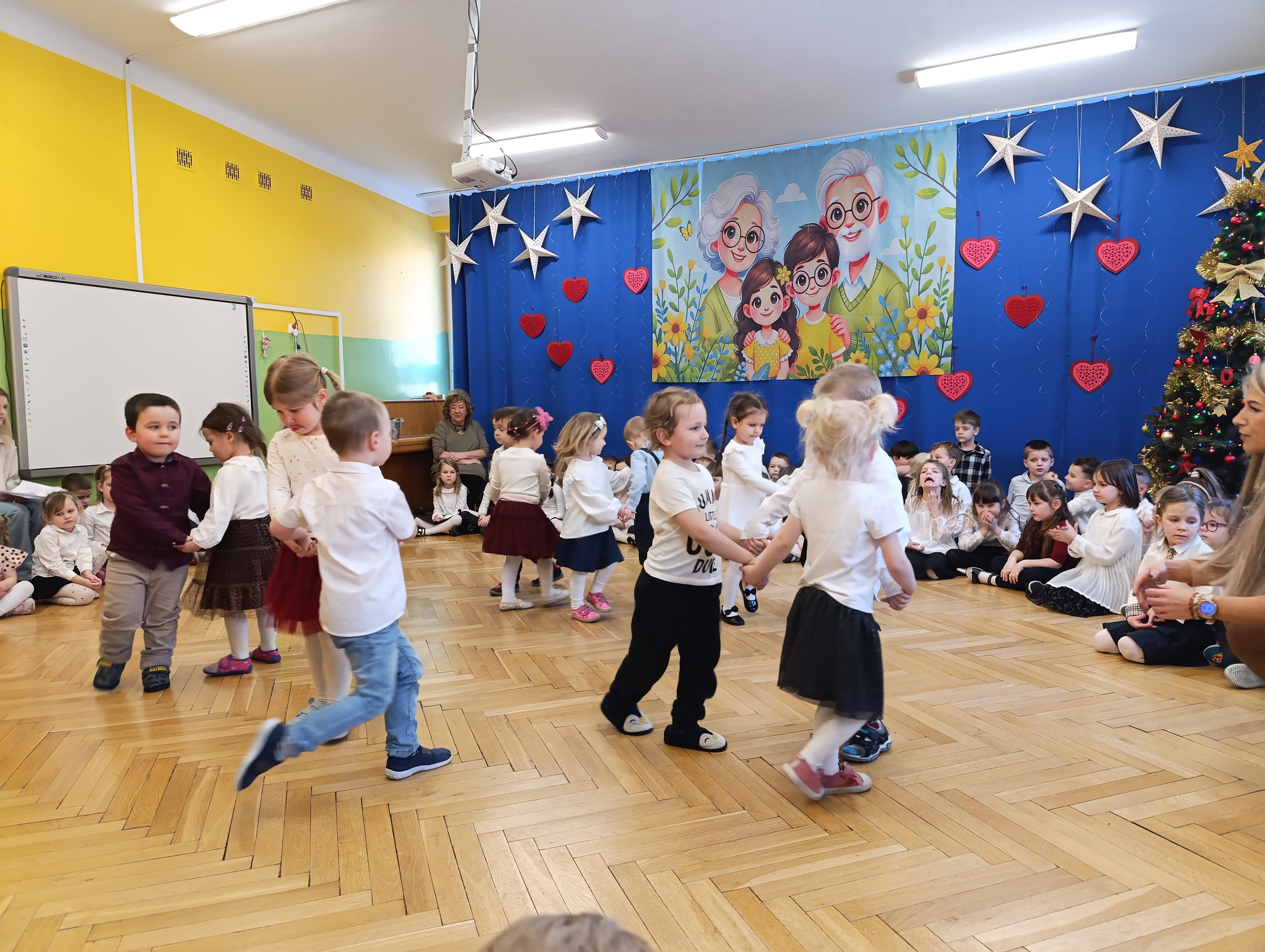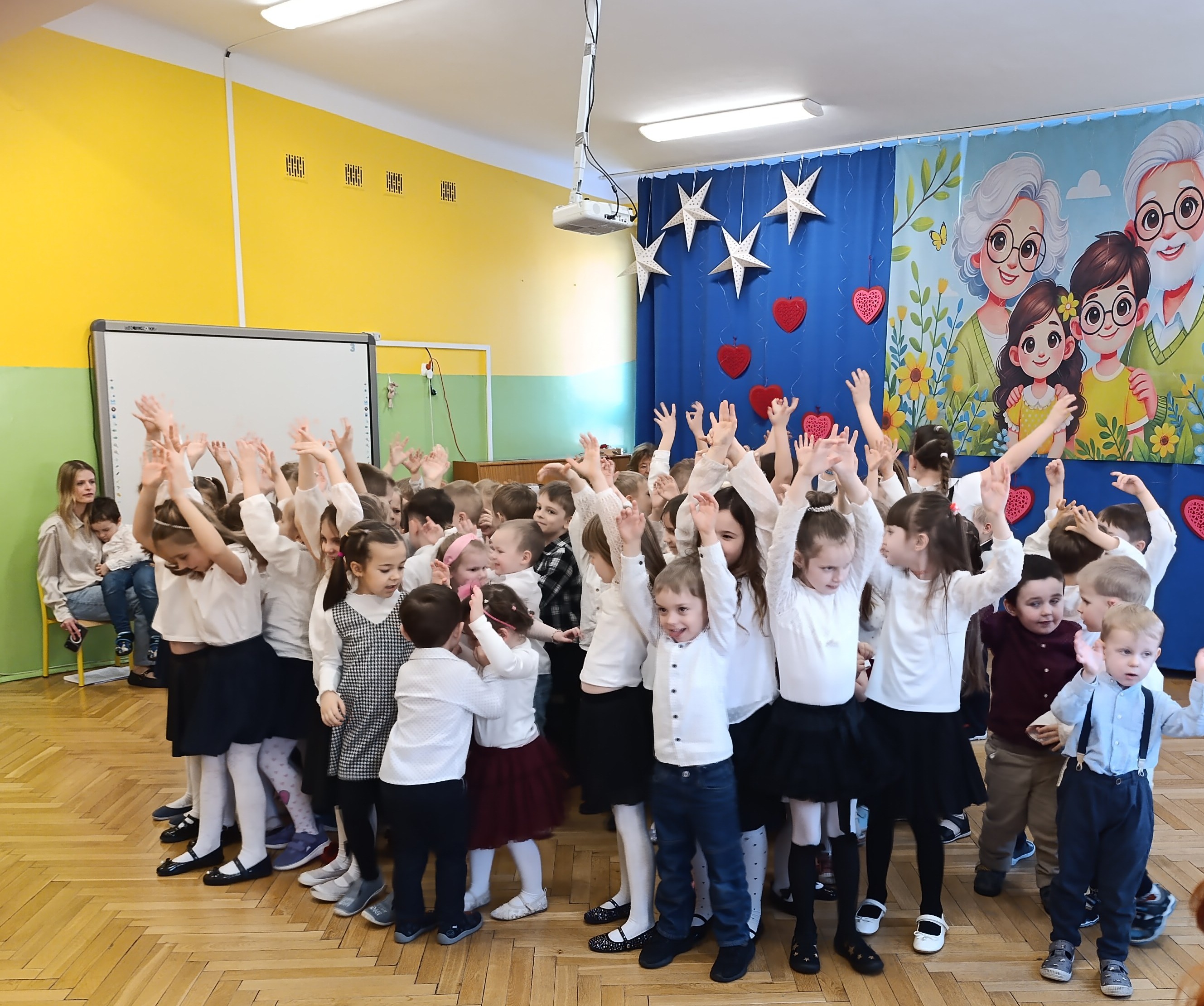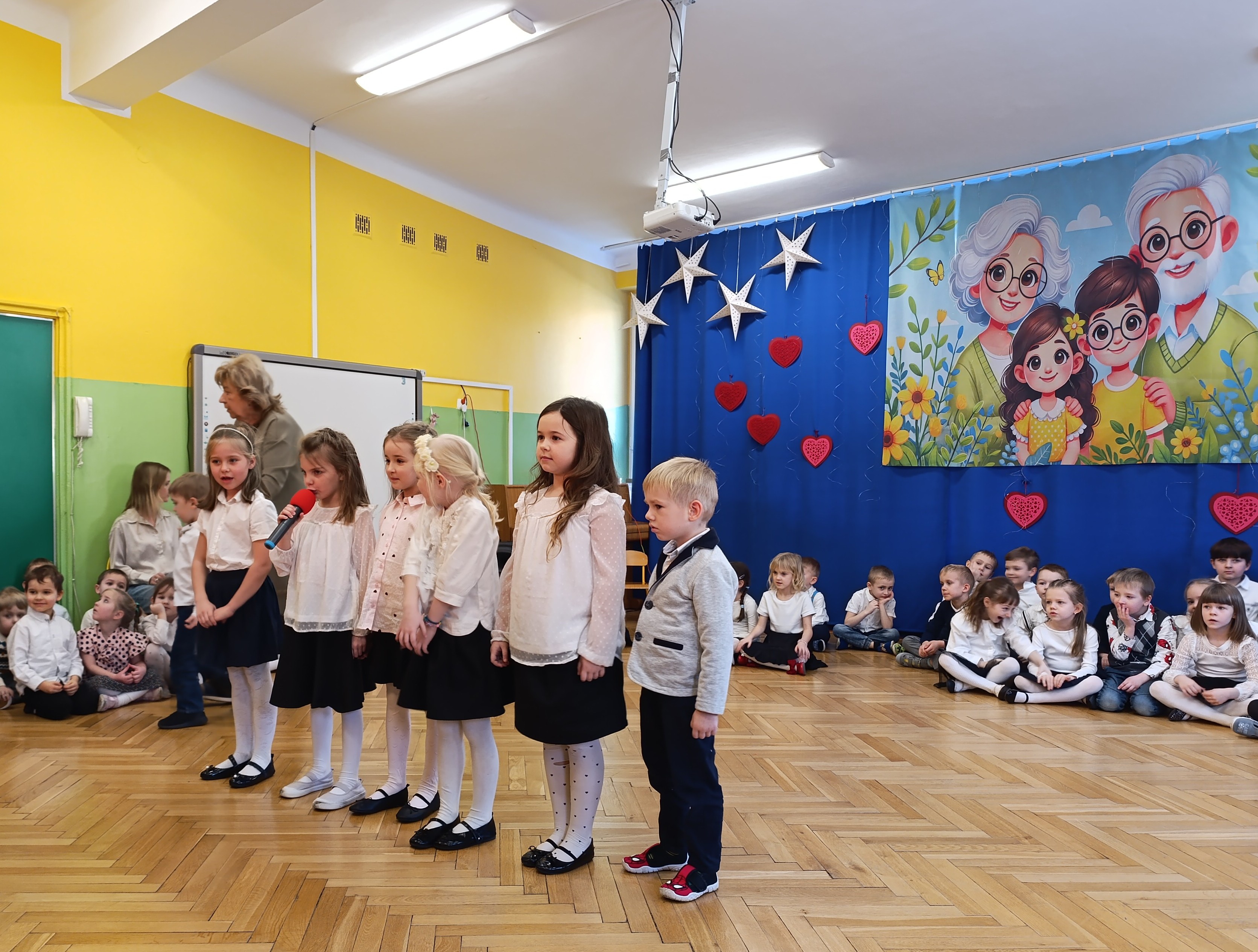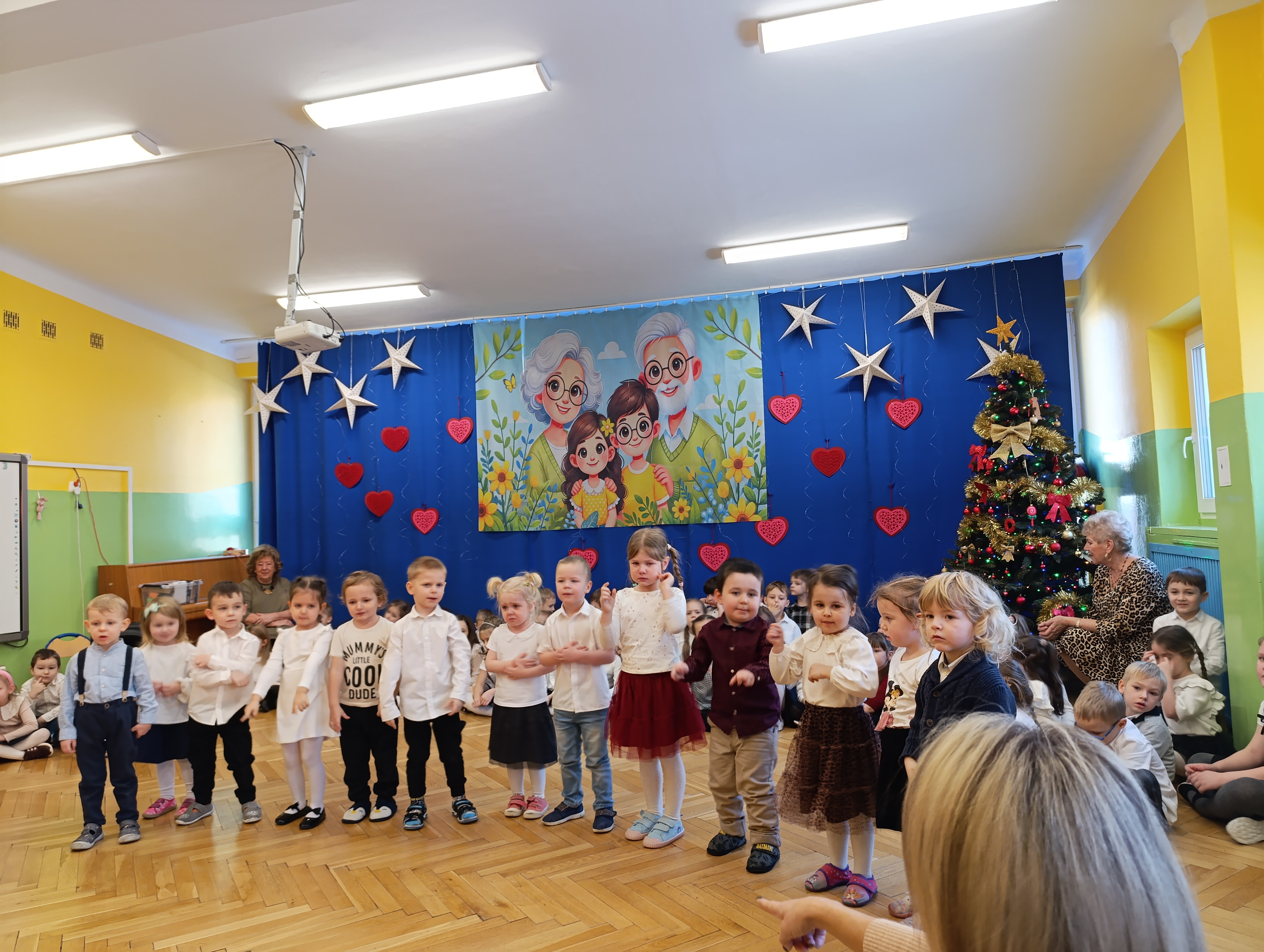 W naszym przedszkolu odbył się uroczysty Dzień Babci i Dziadka. Dzieci z wielkim zaangażowaniem zaprezentowały przygotowane wiersze, piosenki oraz tańce, sprawiając zaproszonym gościom wiele radości i wzruszeń. Na zakończenie uroczystości przedszkolaki wręczyły w klasach swoim Babciom i Dziadkom własnoręcznie wykonane upominki oraz złożyły serdeczne życzenia. Był to wyjątkowy dzień pełen uśmiechów, ciepła i rodzinnej atmosfery.