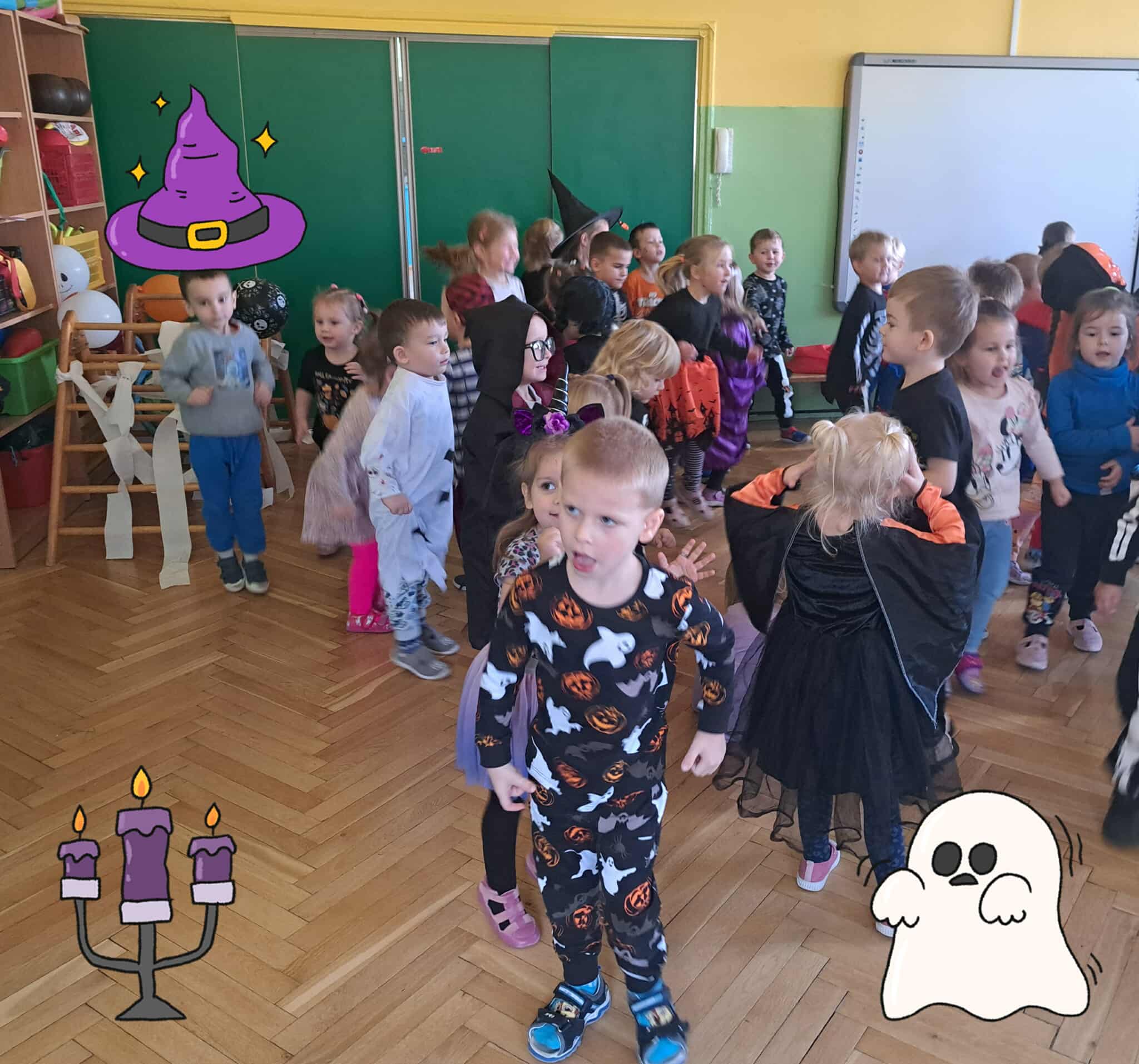 Dnia 30 października obchodziliśmy Halloween. Dzieci poznały zwyczaje i tradycje Halloweenowe, jak również brały udział w balu. Były tańce, pląsy, konkursy, zagadki i zabawy sprawnościowe.