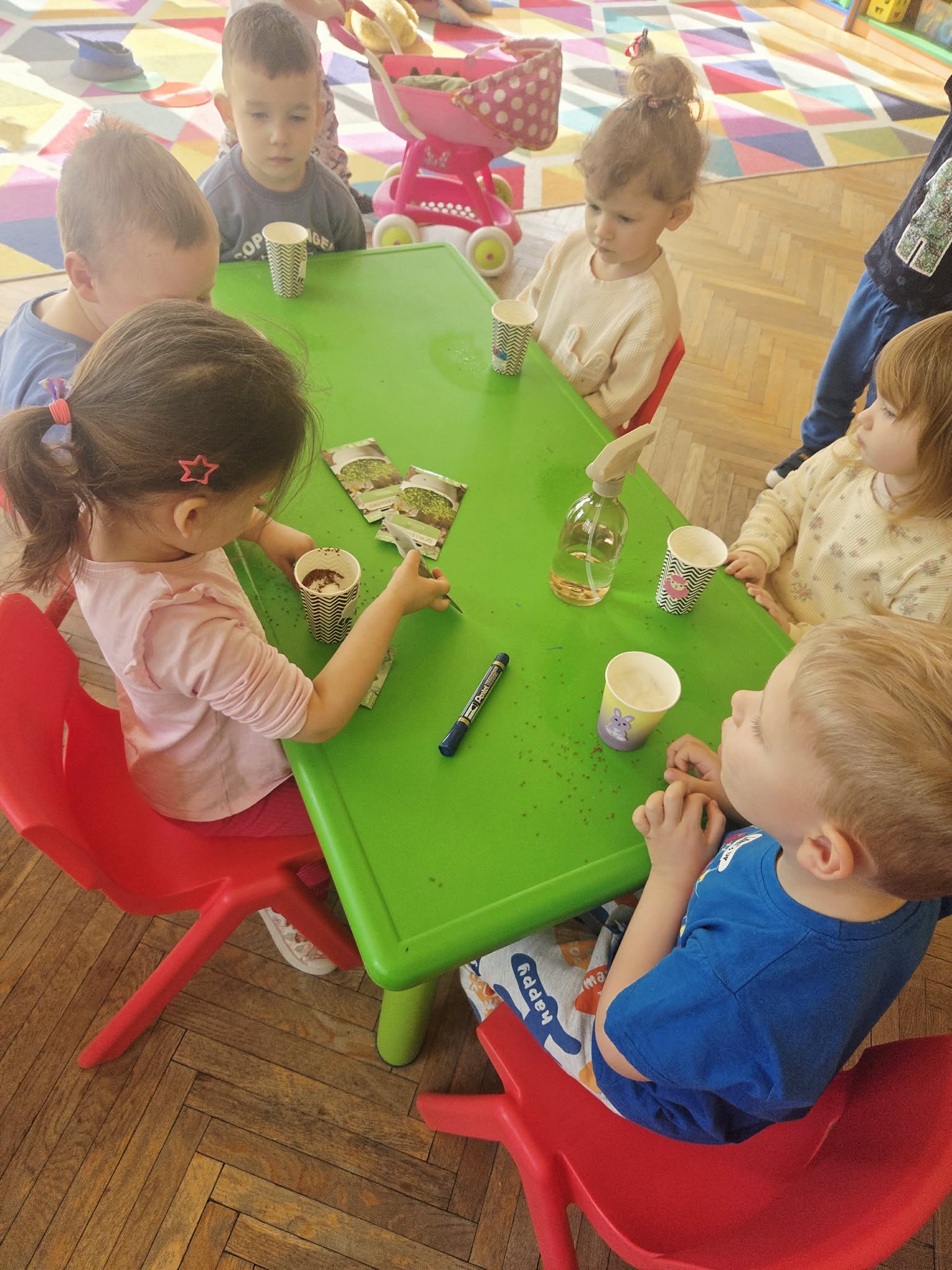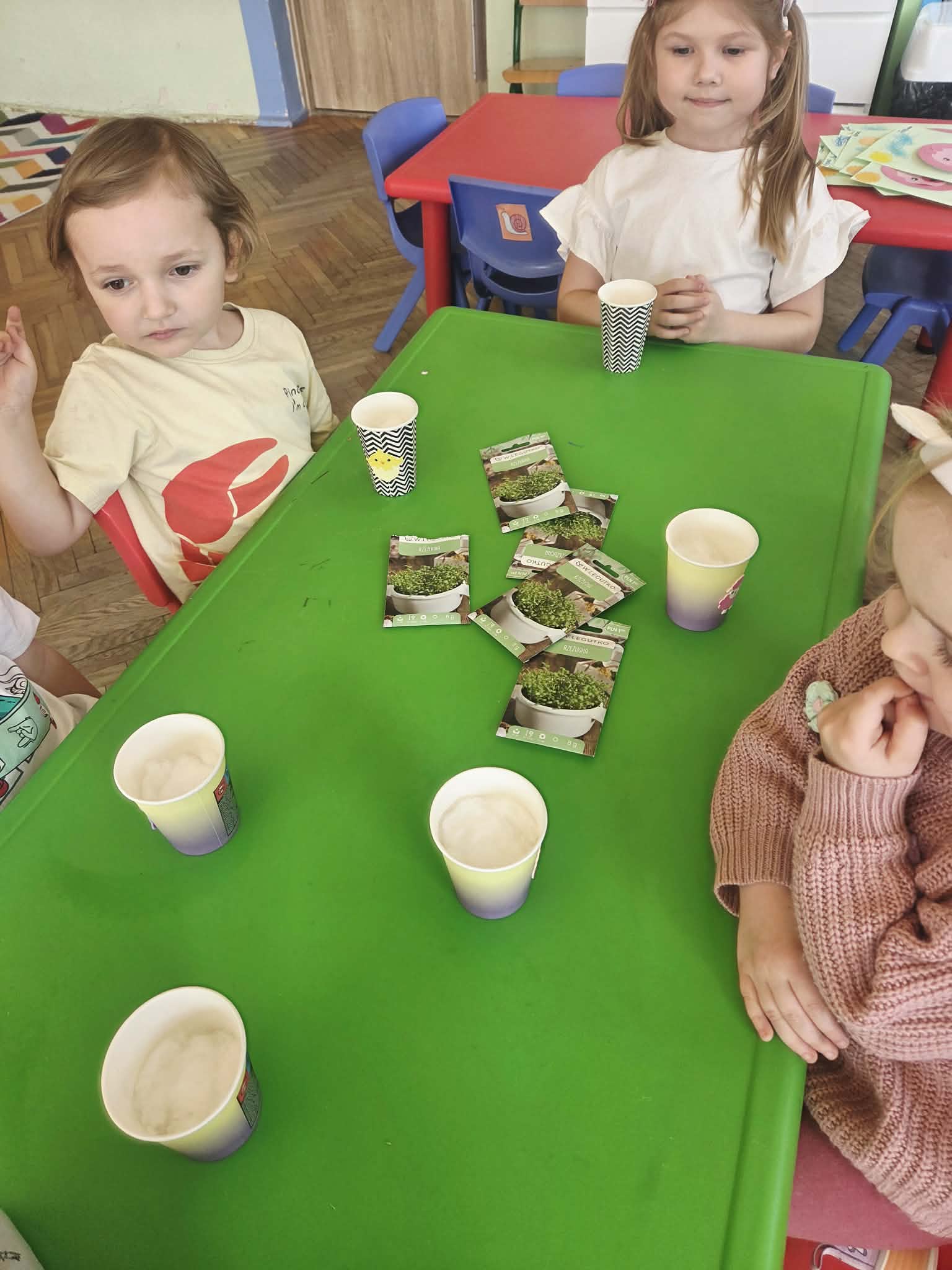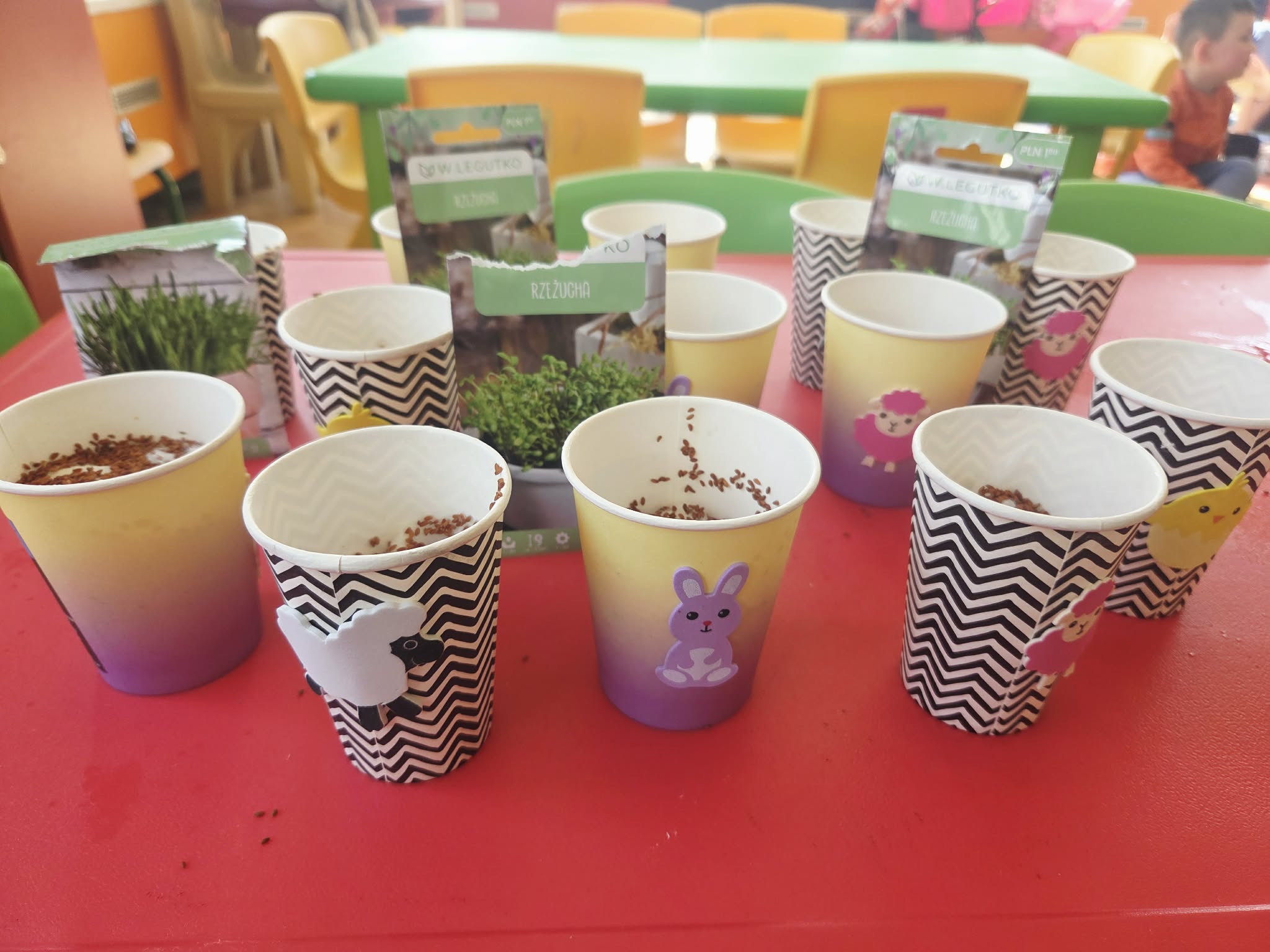 Biedronki posialy rzeżucha i owiec, przygotowania do świąt Wielkanocnych