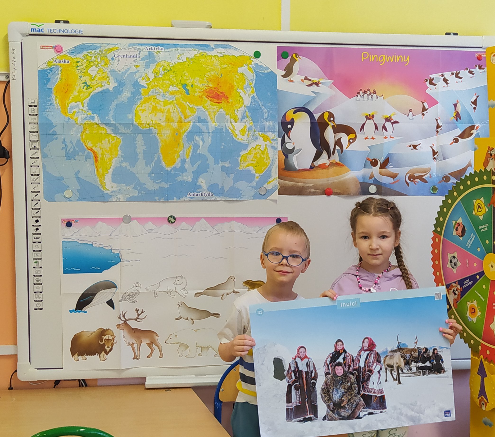 W tym tygodniu rozmawialiśmy o Arktyce i Antarktydzie. Dzieci poznały warunki panujące w tych bardzo zimnych rejonach świata, dowiedziały się jacy ludzie mieszkają w Arktyce oraz jakie zwierzęta można tam spotkać. Porównaliśmy również oba obszary, zwracając uwagę na ich podobieństwa i różnice.
