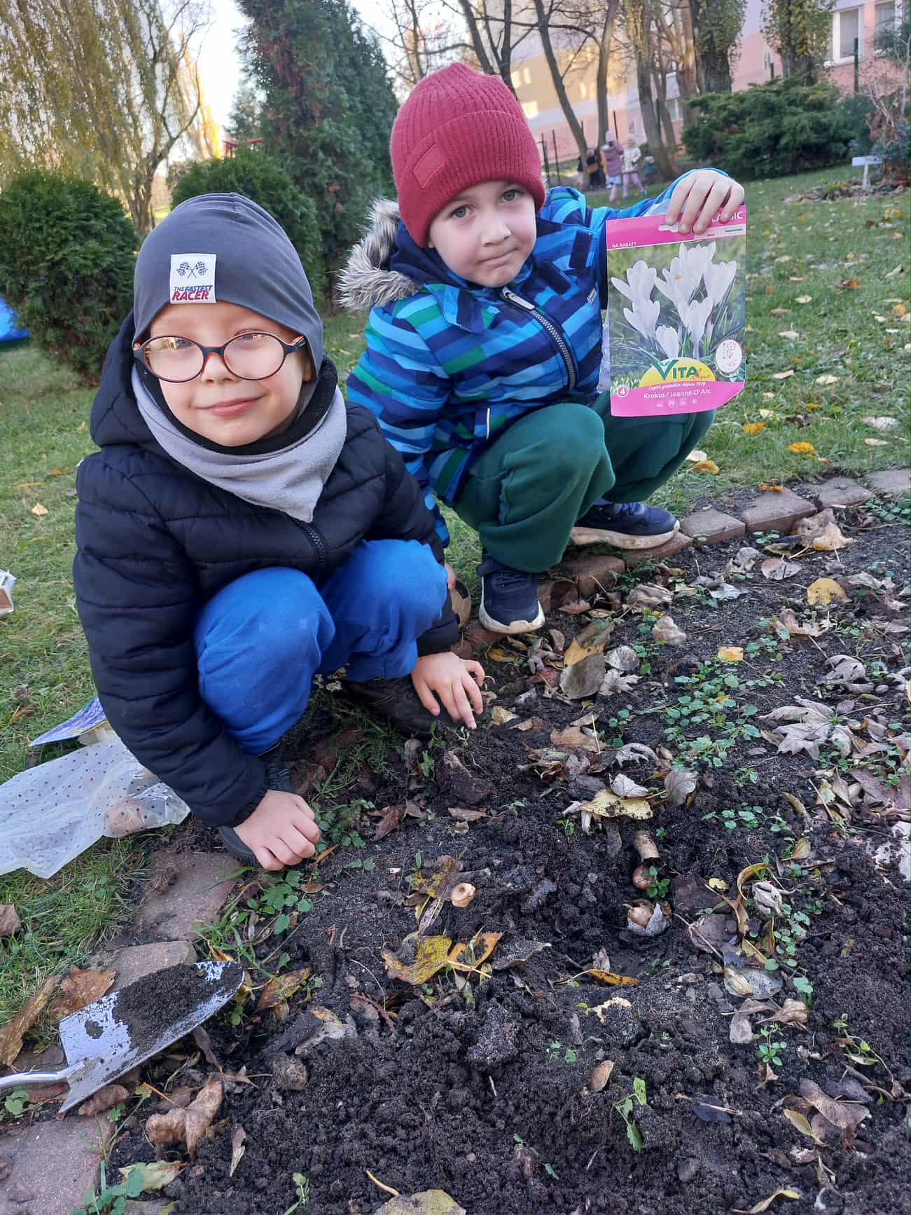 Jest listopad, a my jeszcze pracujemy w ogrodzie. Korzystając z pięknej słonecznej pogody sadziliśmy cebulki tulipanów, krokusów, żonkili i hiacyntów. Teraz czekamy do wiosny, aby nacieszyć się wiosennymi kwiatami.