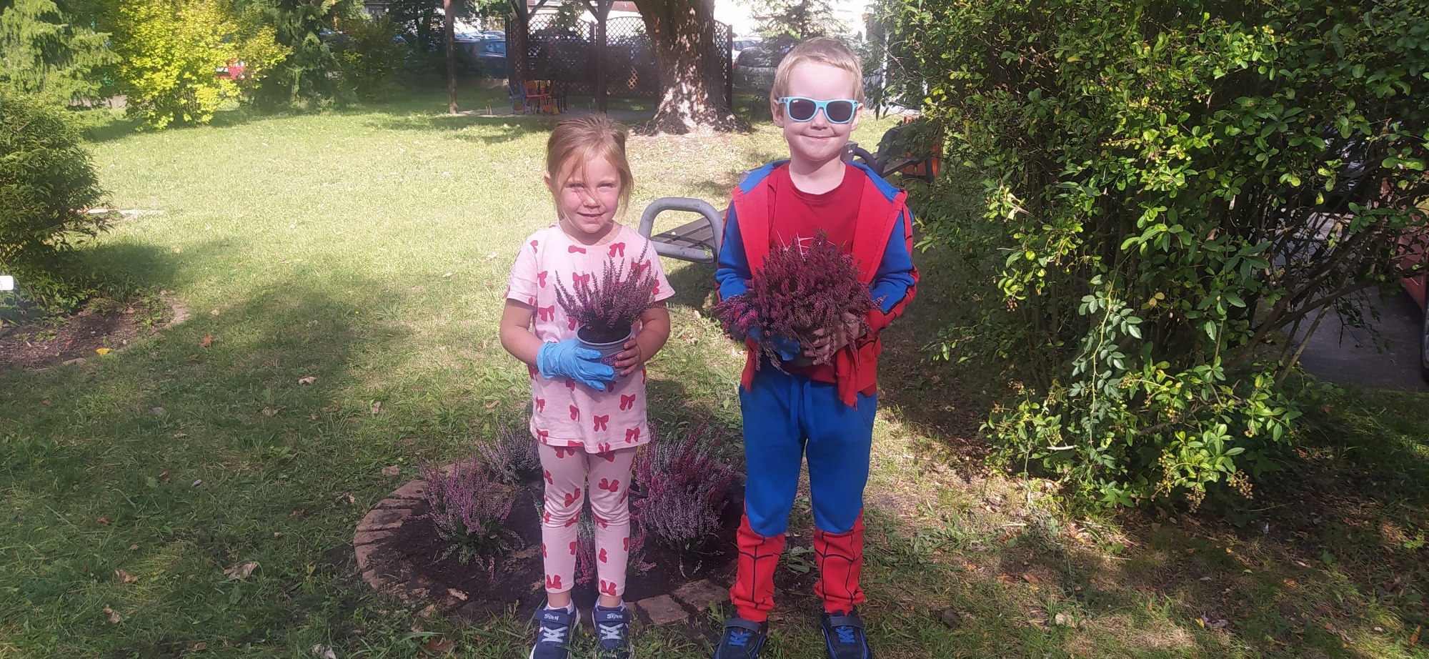 W naszej grupie odbyła się akcja "Wrzosy". Z tej okazji chętne dzieci przyniosły do przedszkola piękne wrzosy o różnych kolorach, które wraz z Panią Anią oraz Renatką zasadziły w naszym ogródku dydaktycznym. Dziękujemy wszystkim dzieciom i rodzicom za zaangażowanie.