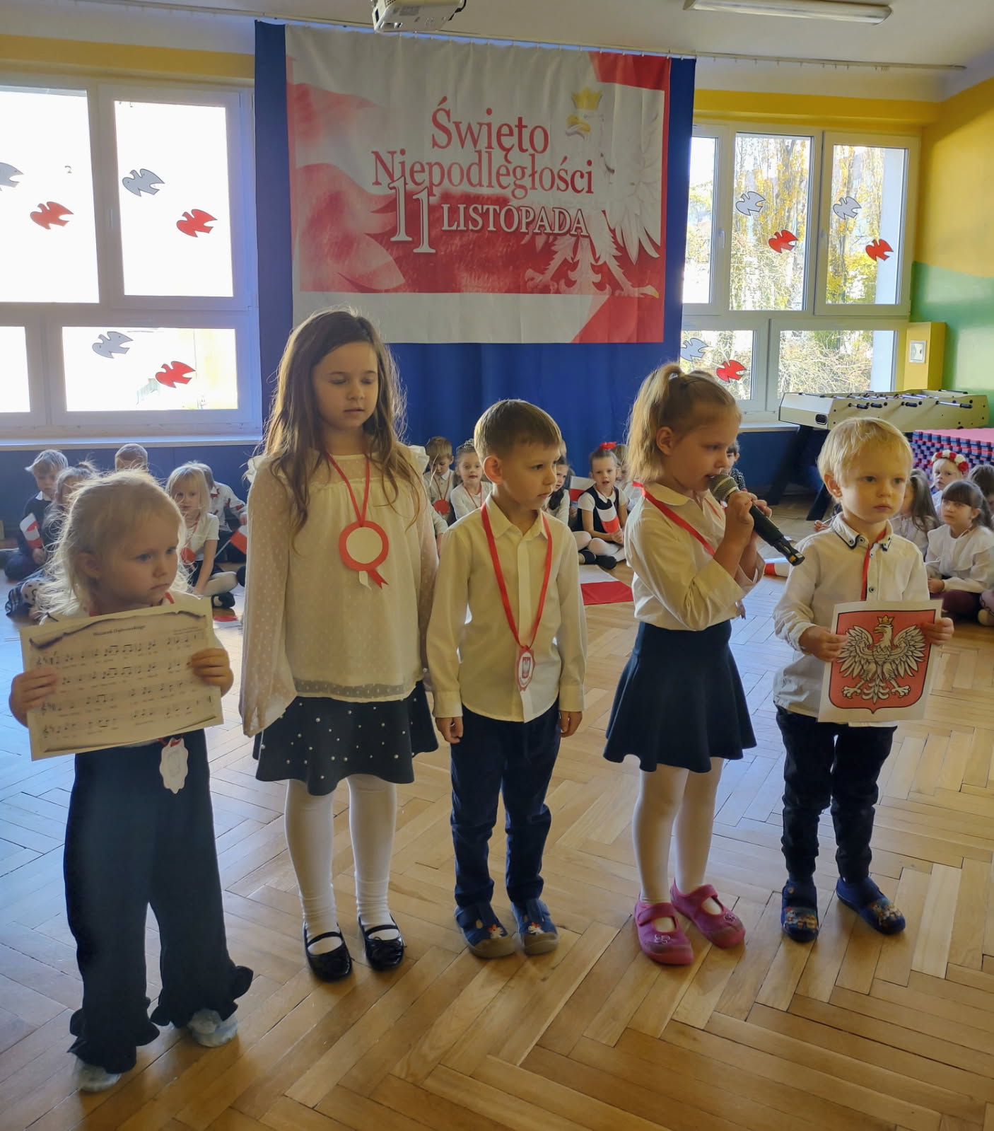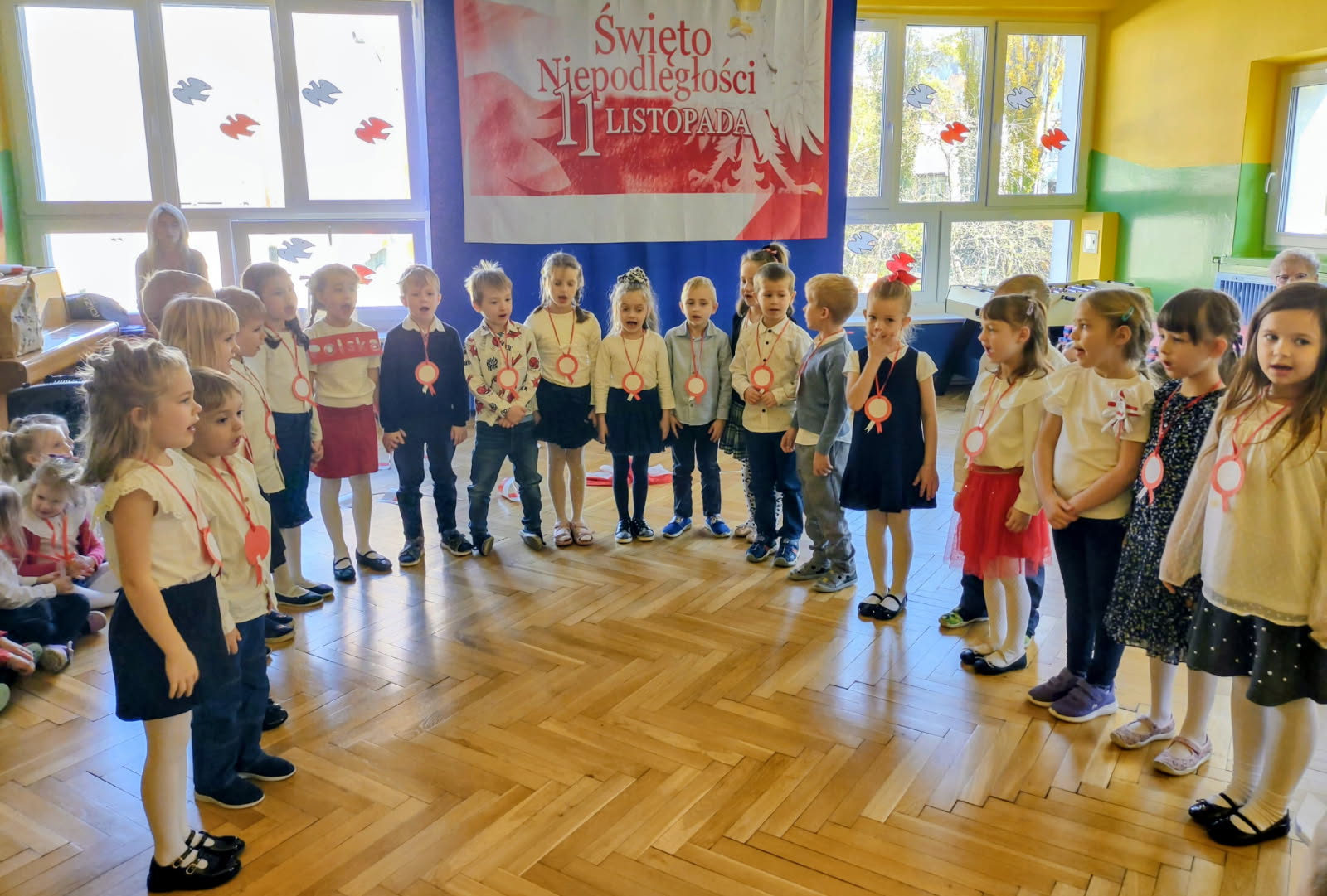 7 listopada obchodziliśmy w naszym przedszkolu Święto Niepodległości. Dzieci oraz wszyscy pracownicy przedszkola uroczyście świętowali ten wyjątkowy dzień. Przedszkolaki recytowały wiersze o Polsce, o symbolach narodowych, śpiewały piosenki patriotyczne oraz w ramach akcji "Szkoła do hymnu" odśpiewały hymn narodowy. Wszystkim towarzyszyły biało - czerwone barwy i duma z bycia Polakiem.