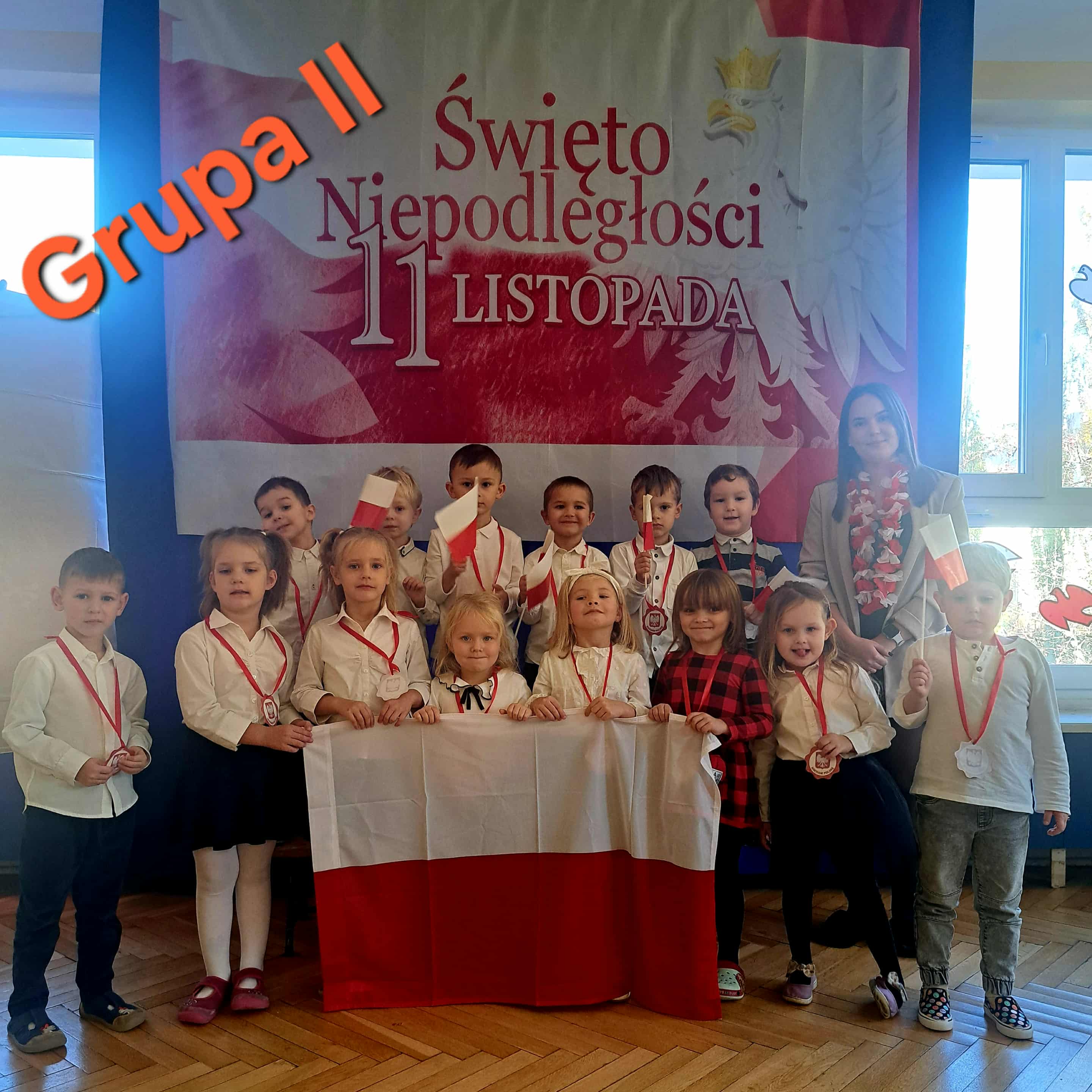 Grupa Kotków obchodziła dziś Święto Niepodległości. Dzieci ubrane na galowo z dumą prezentowały barwy narodowe, ucząc się miłości do ojczyzny i radosnego świętowania tego wyjątkowego dnia.