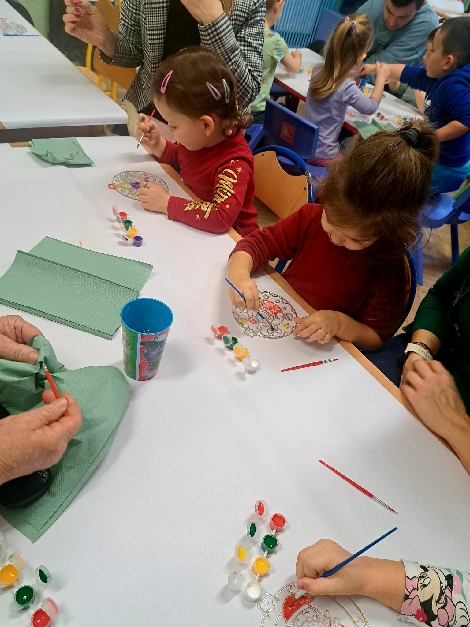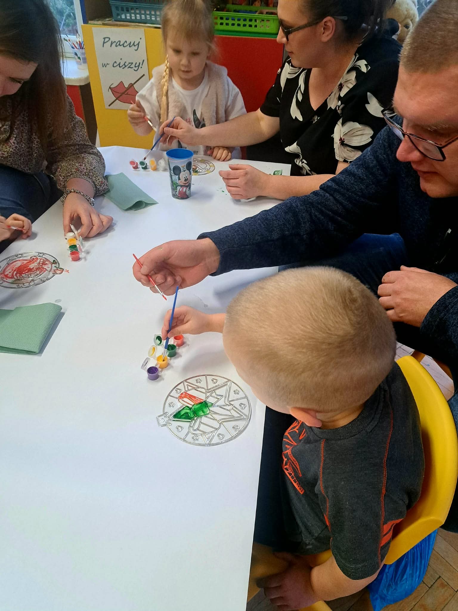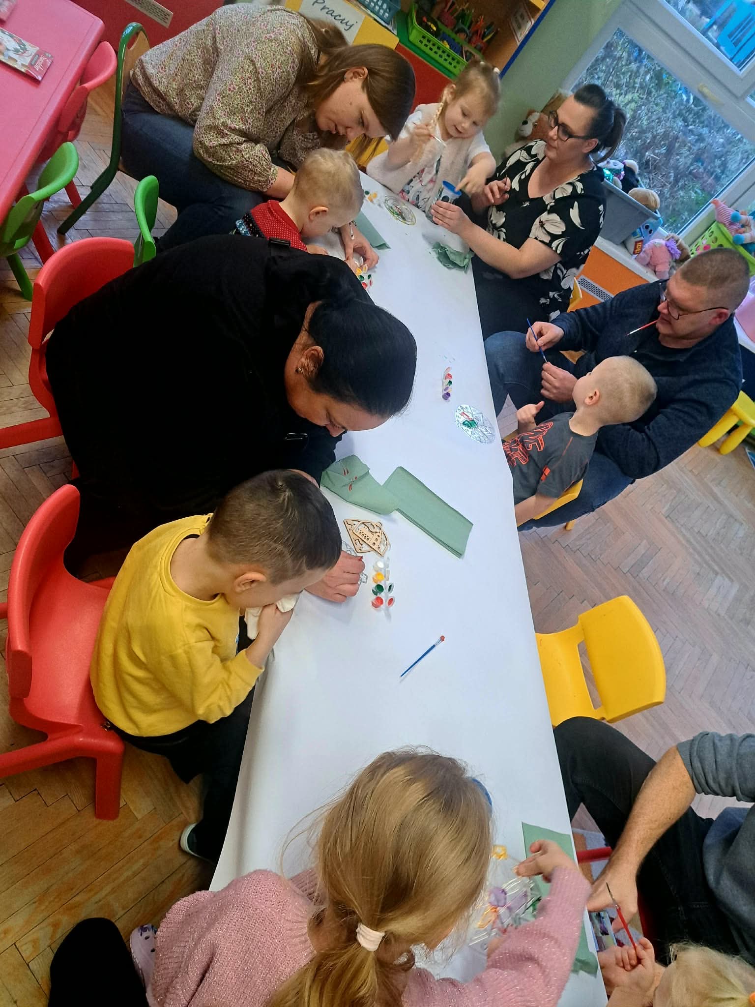 Dzisiaj odbyły się warsztaty świąteczne z rodzicami. Dzieci wraz z rodzicami wykonywali ozdoby choinkowe. Była świetna zabawa.