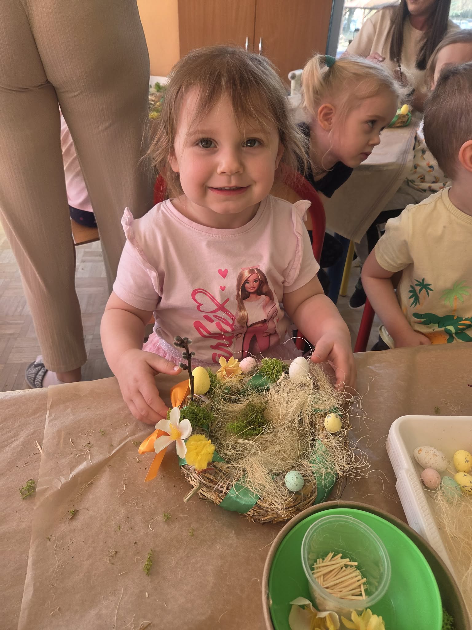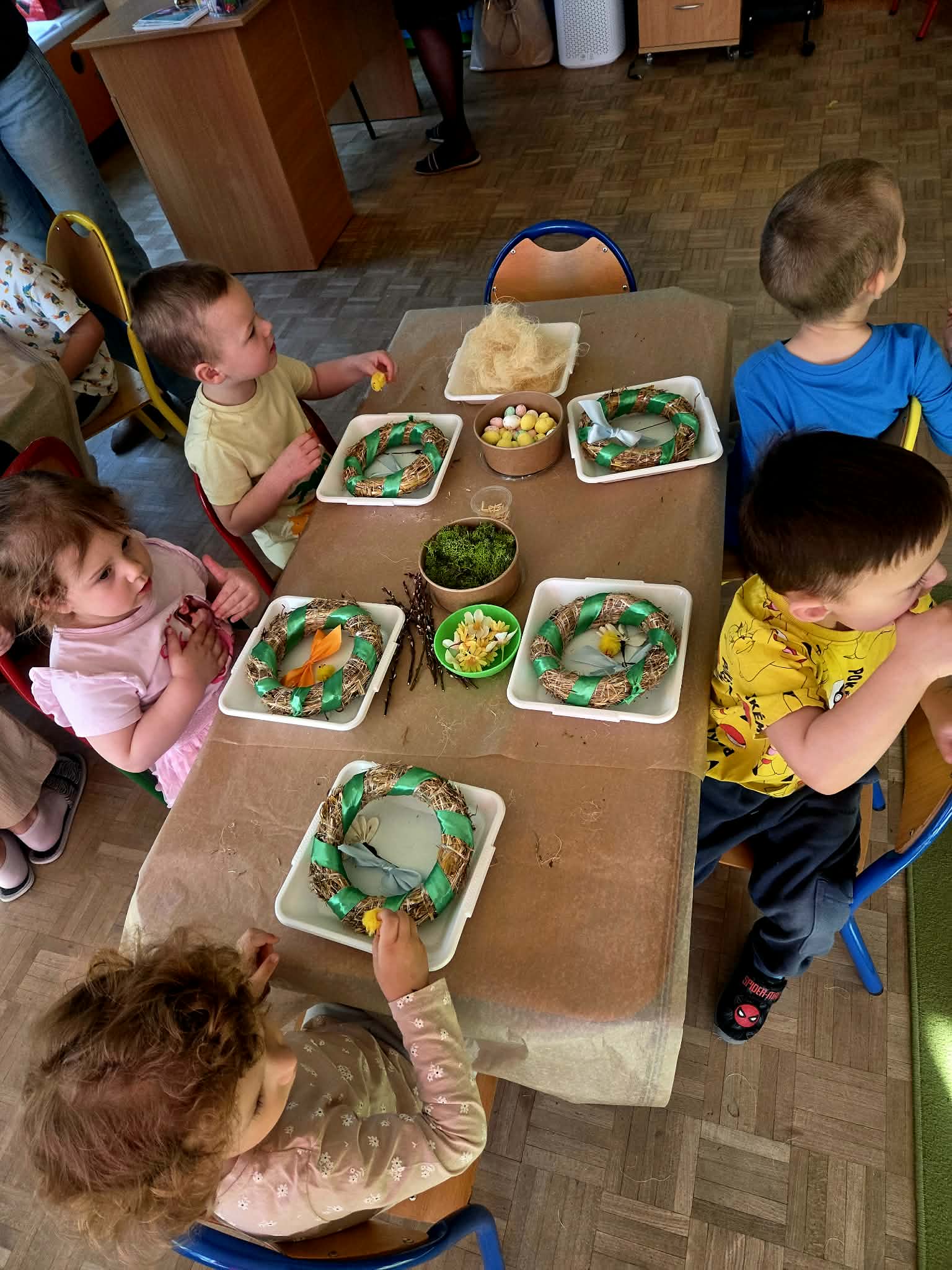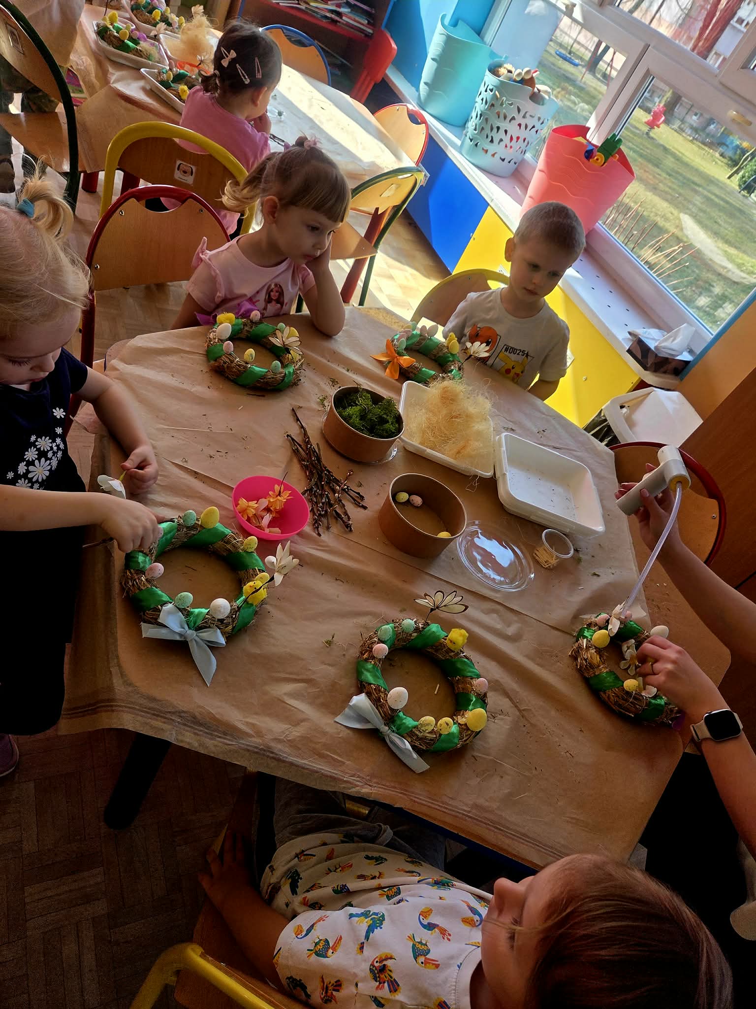 Dzieci brały udział w warsztatach Wielkanocnych wykonując piękne stroiki.