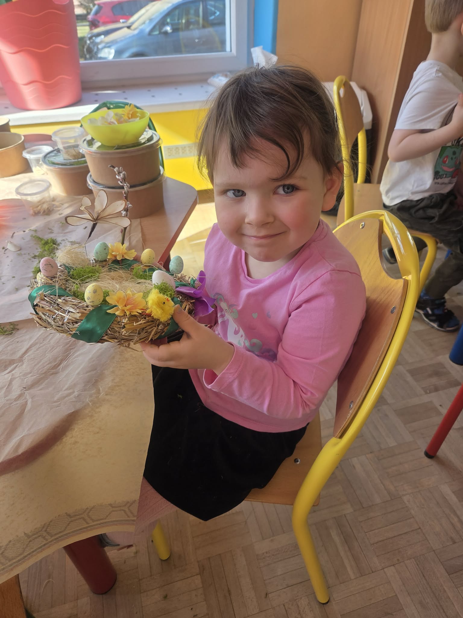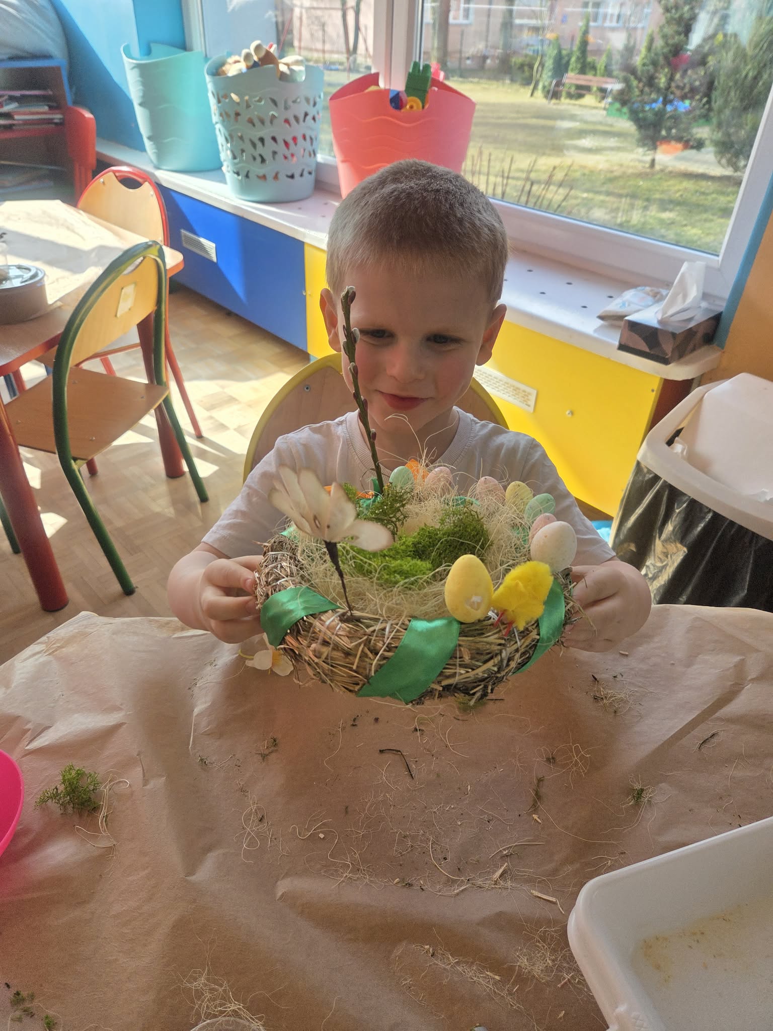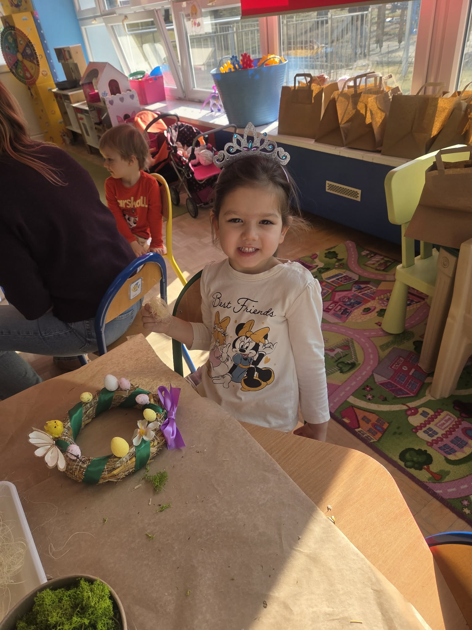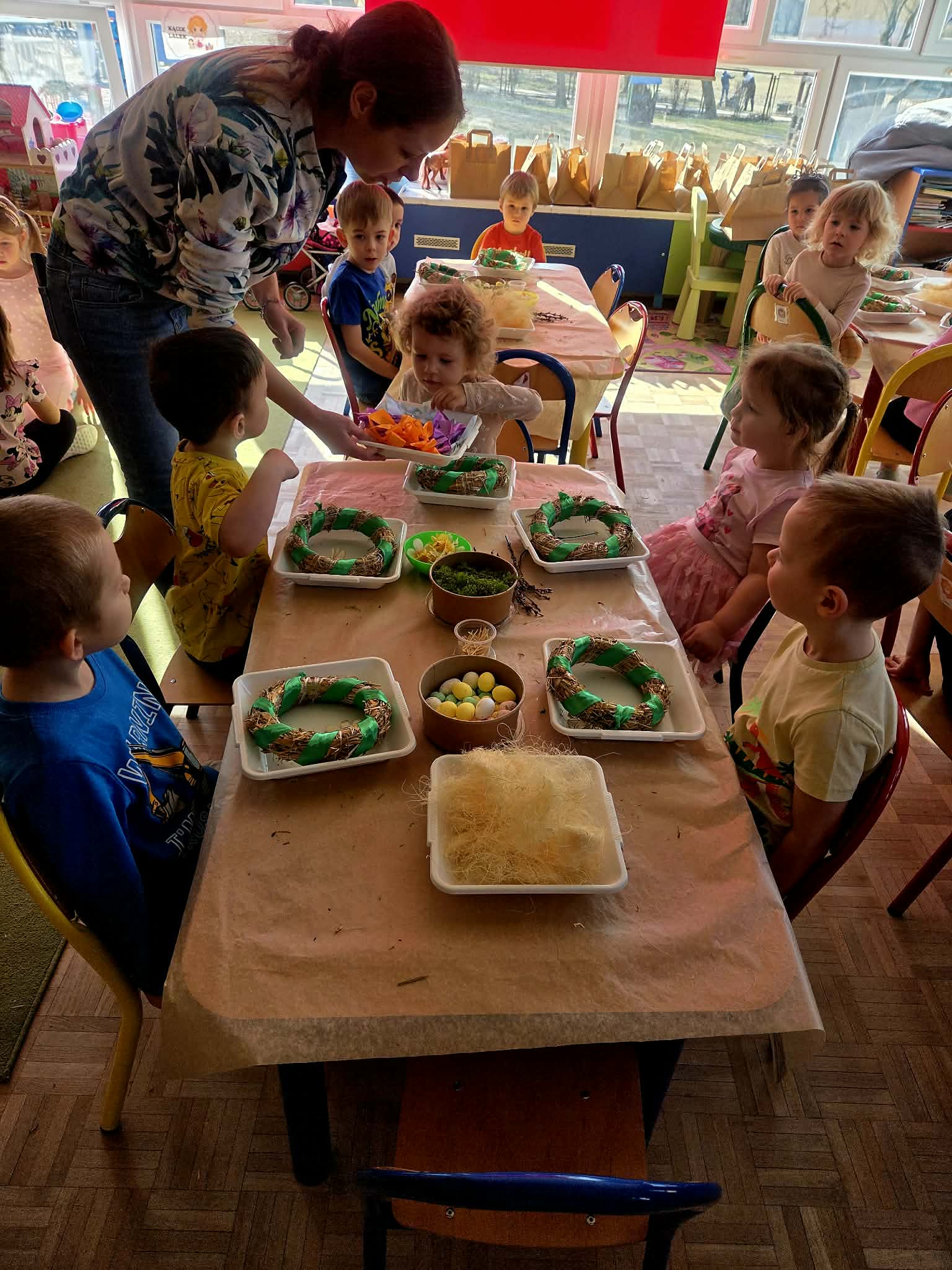 Dzieci brały udział w warsztatach Wielkanocnych wykonując piękne stroiki.