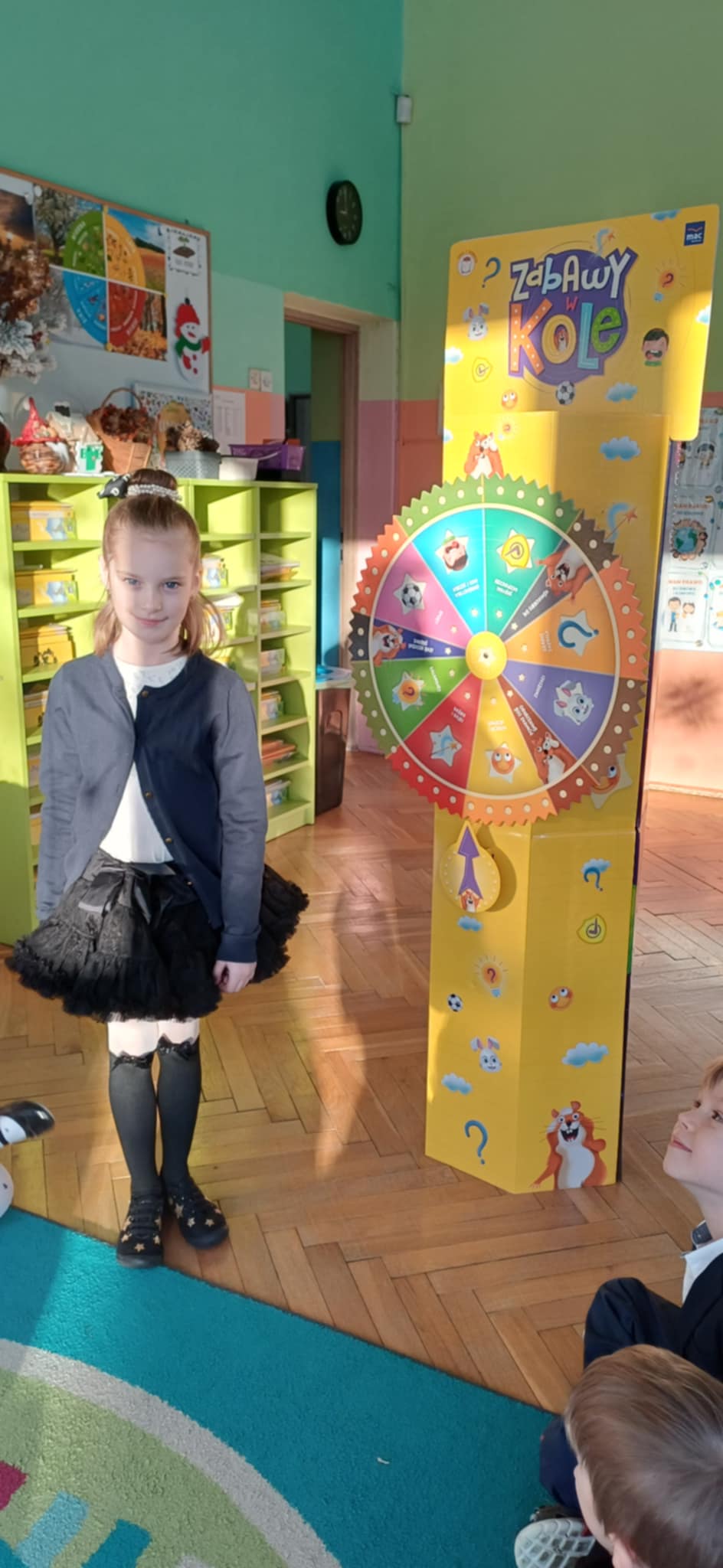 Nasza grupa otrzymała nowa pomoc dydaktyczna jaka jest koło ala koło fortuny.Dzieki niemu rozwiązujemy zadania z zakresu sportu, emocji, utrwalania liter, bezpieczeństwa.